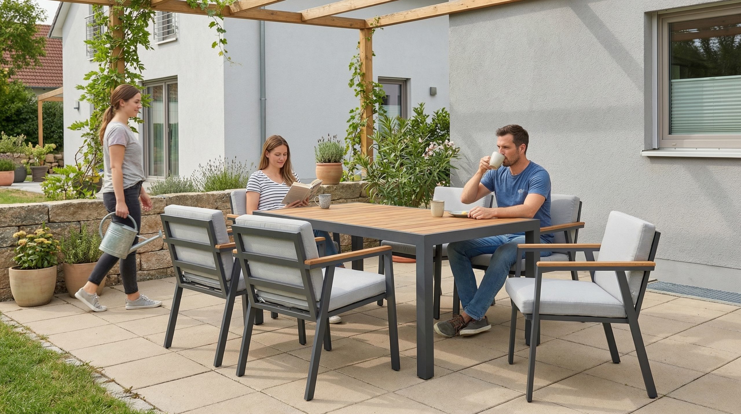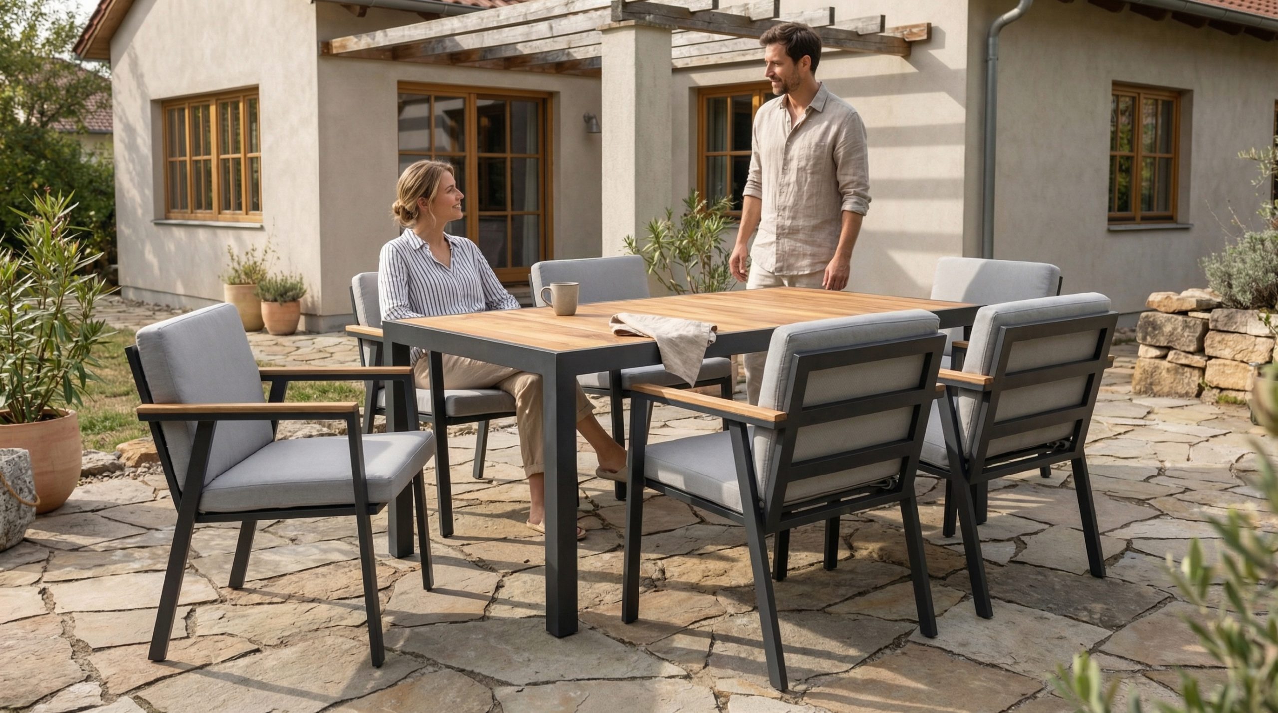Berussa Seating Group, which will accompany your invitations and family dinners with its elegance, has been designed to shape the trendy look in your terrace and garden decoration with its various color options and the warm atmosphere of wood. You can use the Berussa Seating Group, at the forefront with its corrosion-resistant frames, comfort, and functionality, for many years in your pleasant moments in your indoor and outdoor spaces.