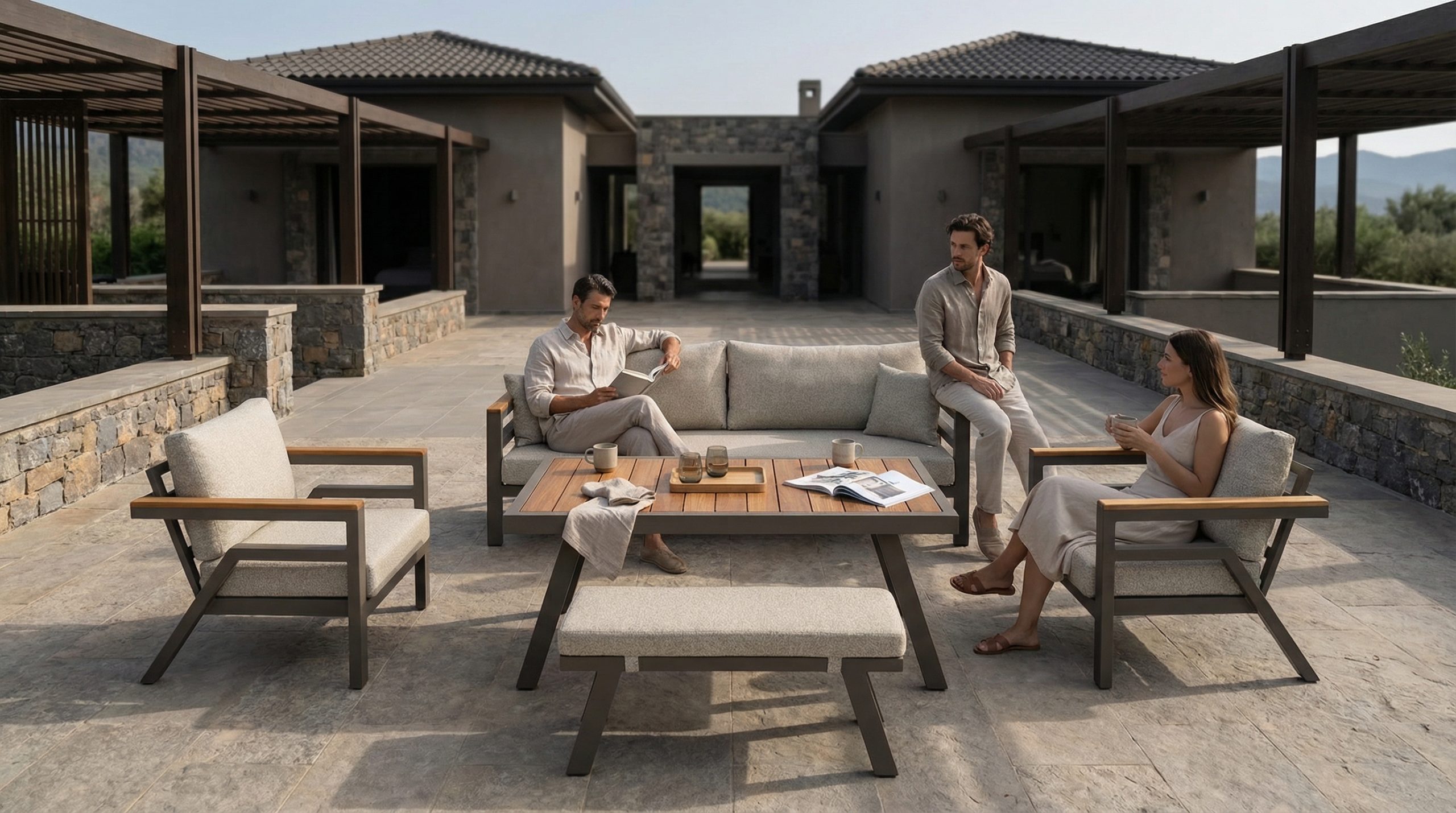 With its smooth and solid aluminum surface, a light structure that can be carried easily, the Panama Seating Group, which you can use for four seasons without any problems, brings an aesthetic and elegant appearance to your garden. Panama Seating Group, where contemporary and simple design lines meet with comfortable cushions that provide comfort and ease of use, will make every moment in your living spaces peaceful.