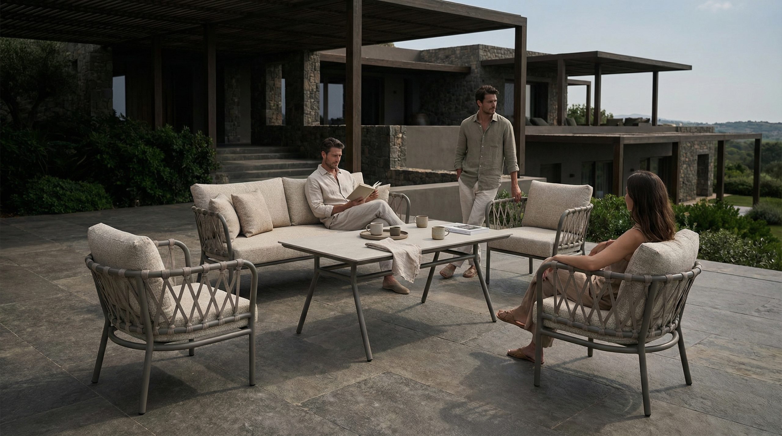 Produced with the harmony of elegance, Puqlia Seating Group captures comfortable integrity in your living spaces with its original details. Color options that can adapt to any decoration, washable and comfortable cushions will become the comfort element of your pleasant conversations throughout all four seasons.