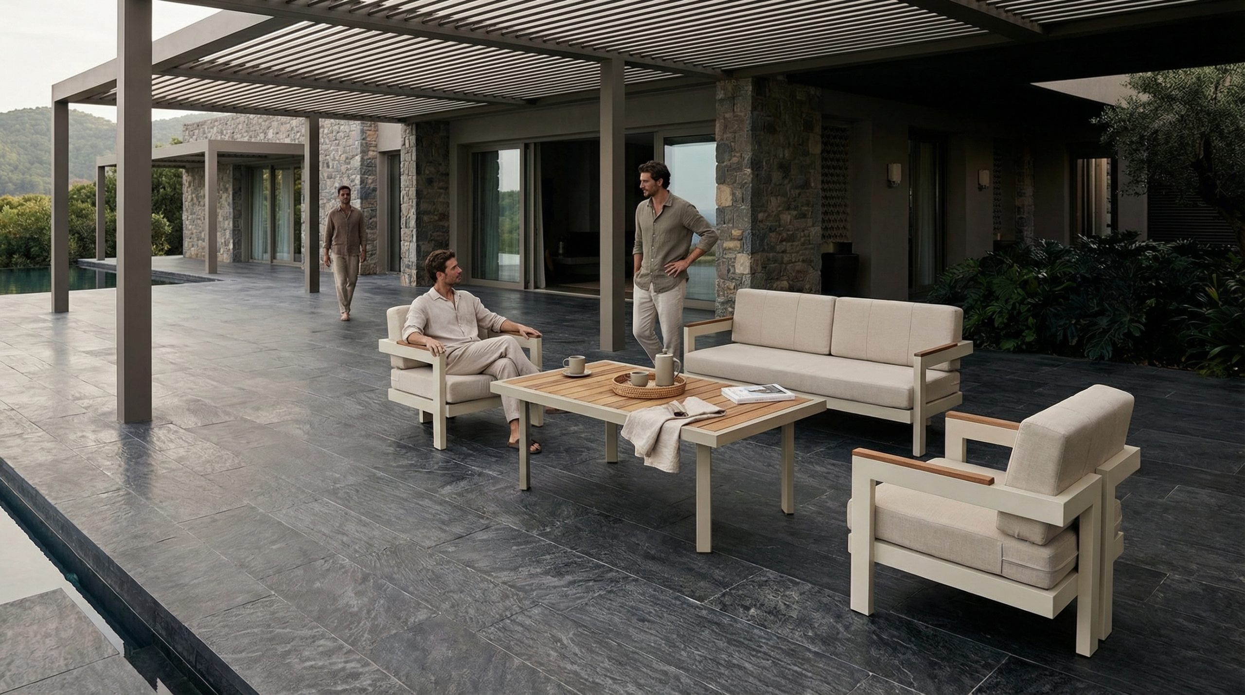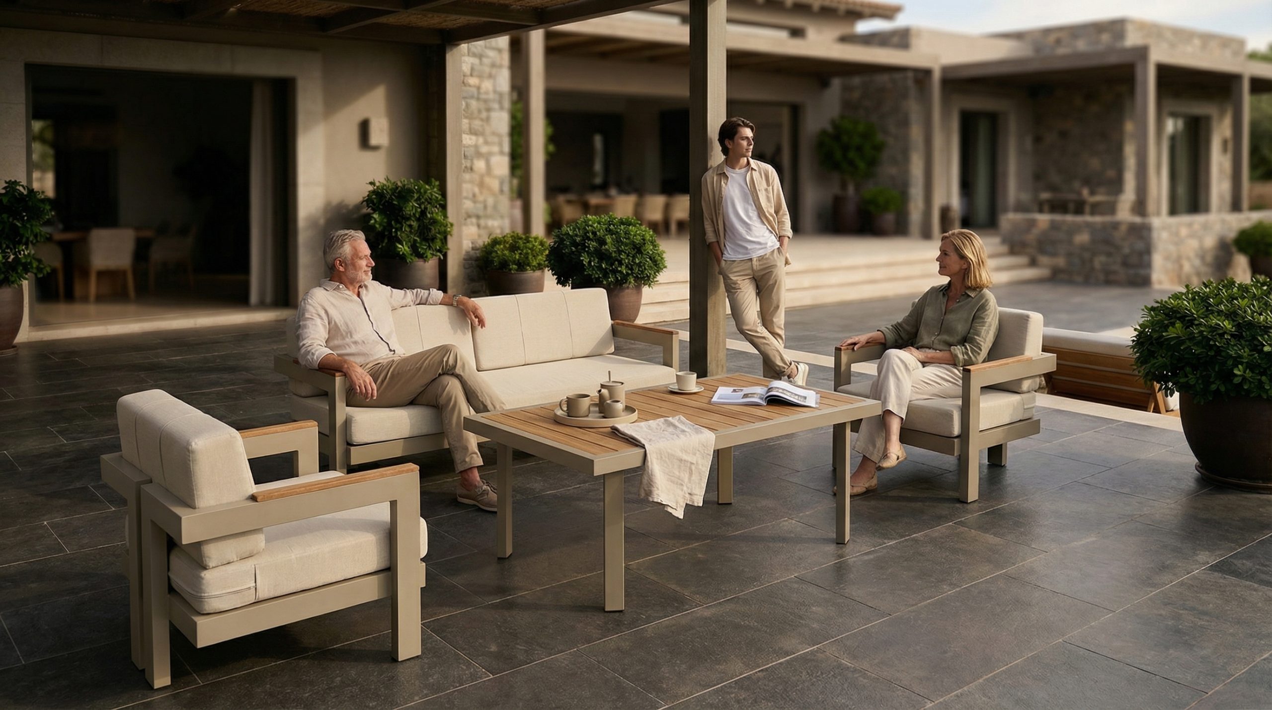 The warmth of natural iroko wood meets the timeless elegance of clean, minimal lines. Rodos transforms comfort into a true privilege in outdoor spaces, creating a serene, balanced, and inviting living atmosphere through every detail. Designed for moments of unwinding, long conversations, and understated elegance. With a form that harmonizes with modern architecture and a texture inspired by nature, it offers flawless comfort in the open air.