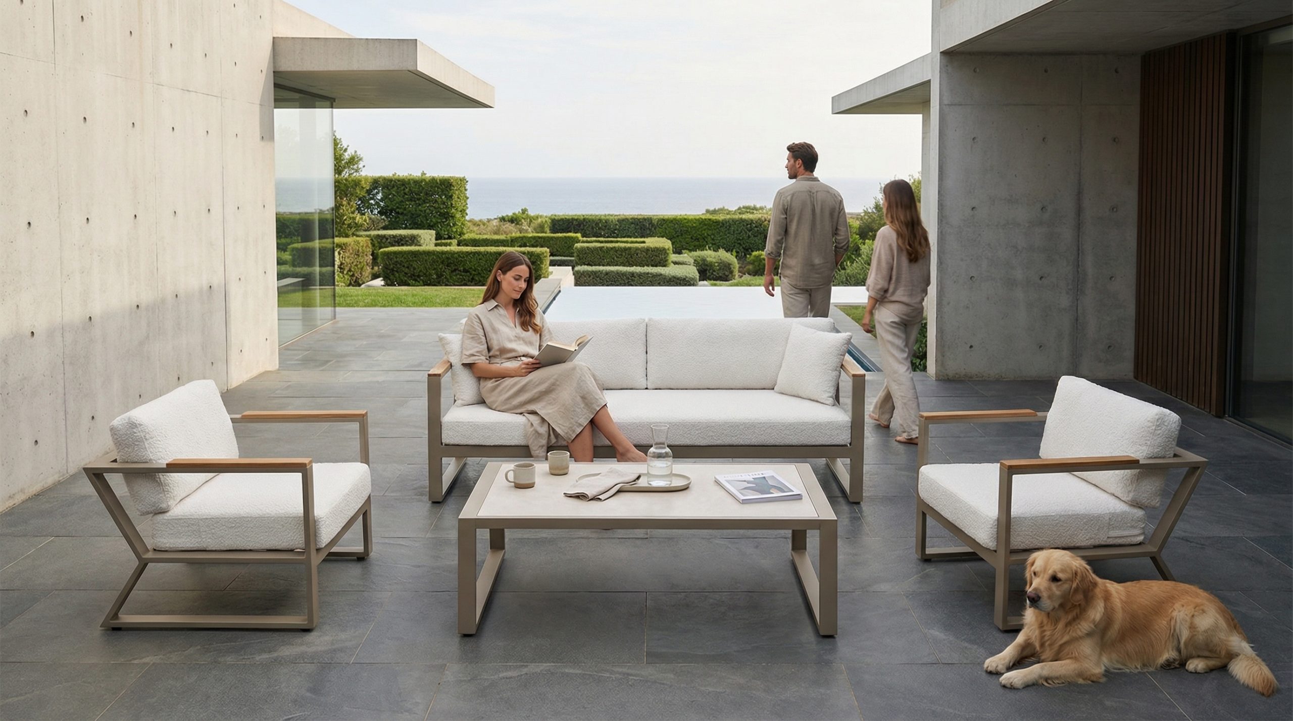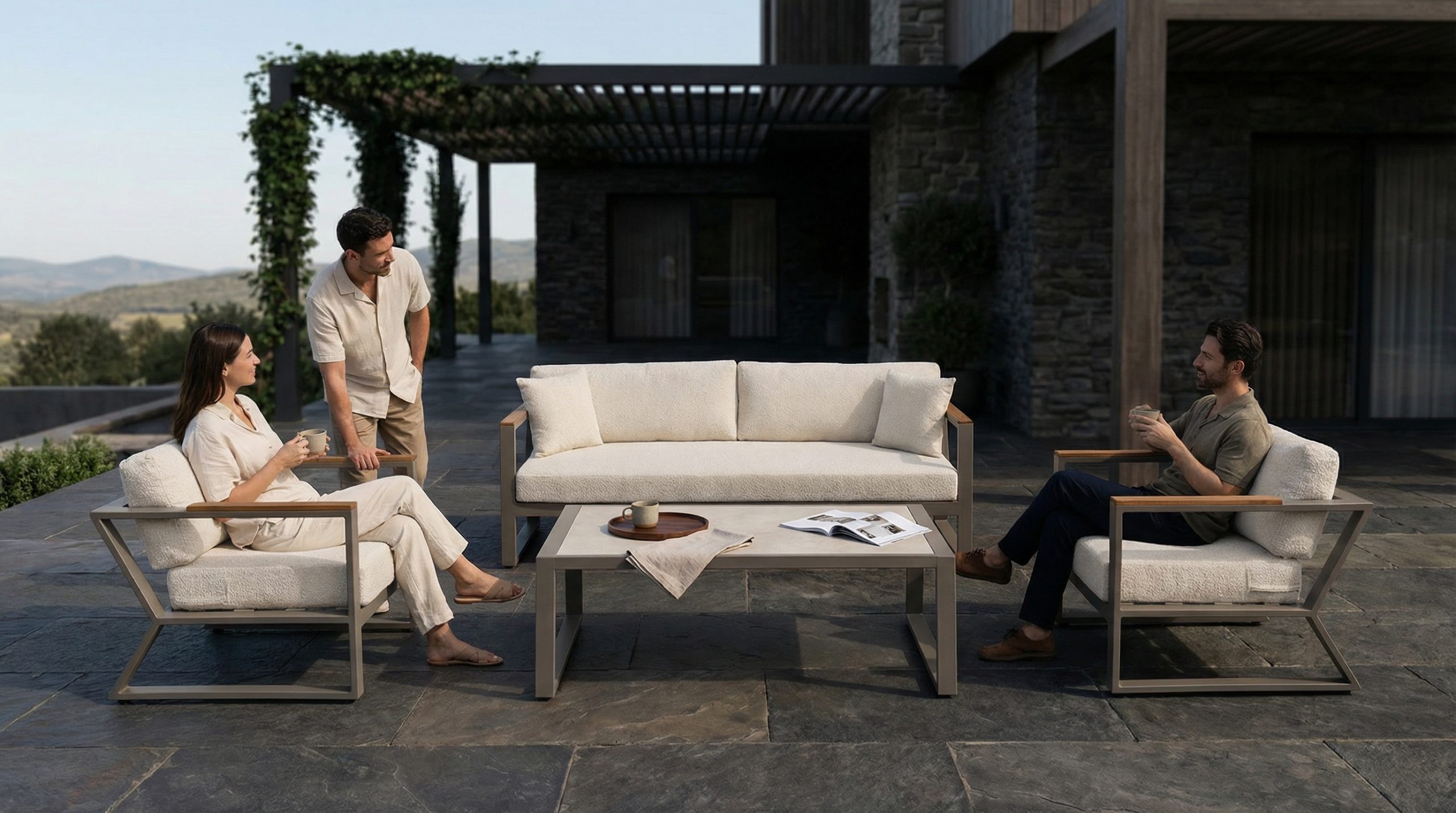The high-quality, light, and free spirit of the Iroko tree, which brings the relaxing feeling of the rainforest to your homes, is reflected in your living spaces with the Lounge Seating Group. Resistant to corrosion and sunlight; The modern and elegant design of the Zeugma Seating Group, where waterproof, colorfast, and washable cushions come together with stainless aluminum, will complement the pleasant times you will spend with your loved ones.